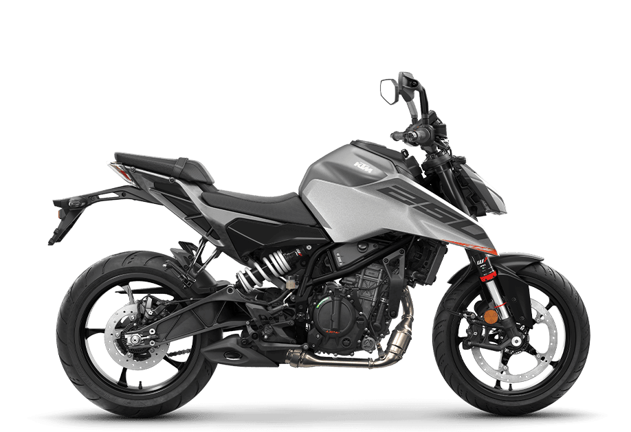 The KTM 250 DUKE flaunts with, a 250 cc powerplant - this machine is 250% DUKE! Built with the same NAKED ethos as its bigger brethren, the 2025 KTM 250 DUKE boasts a muscled-up attitude, excellent suspension package, LED lights, riding tech, and street-ripping, turn-gripping aggression.
